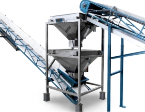Sistema para pesagem de produtos granulados e líquidos com alimentação continua sem interrupção, gestão automatizada de pesagens e gestão de históricos a través de PC.
