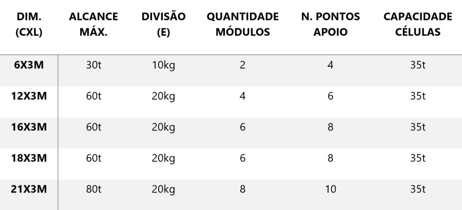 Báscula Ponte totalmente metálica, facilmente desmontável, com o fim de facilitar todas as operações de transporte e montagem.